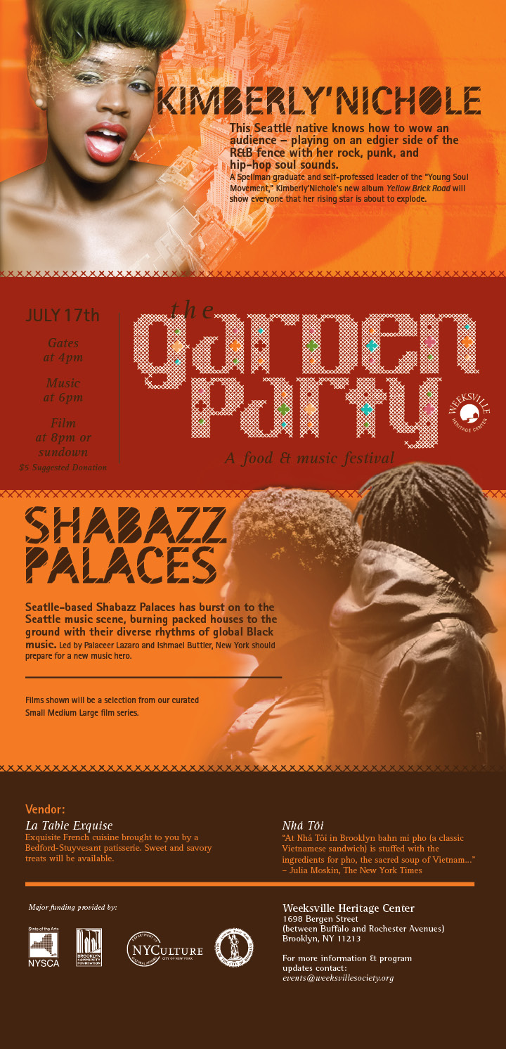 Check out this week’s lineup at Weeksville. Music starts at 6pm, which should give you plenty of time to recover from rockin’ out Friday at Tamar-kali’s show.